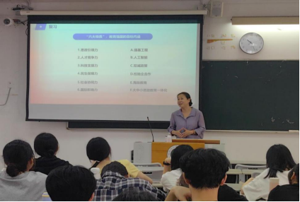 2025年5月20日上午,小学教育学院党总支书记陈淑华以《建设教育强国面临的形势与挑战》为题,为24小学数学教育班学生讲授形势与政策课,课程围绕世界百年变局、科技革命和产业变革展开,通过学习习近平总书记《论教育》,引导学生珍惜学校资源,明确职业发展方向。