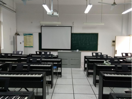 电钢琴教学实训室主要用于对小学教育专业学生进行钢琴专业技能的集中教学。设有钢琴演奏技巧、钢琴即兴伴奏、钢琴键盘等课程,通过教师演示讲解、学生独奏、合奏、齐奏等形式,提高学生的钢琴演奏水平、即兴伴奏能力及合作意识。