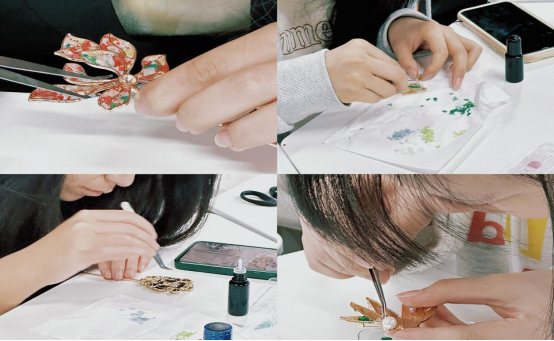 在活动开始前,生劳部的学生干部为同学们讲解了螺钿,缠花非遗的历史并详细地讲解制作步骤,同时引导同学们尽情发挥自己的创意,巧妙运用奇思妙想,制作出属于自己独一无二的非遗作品。