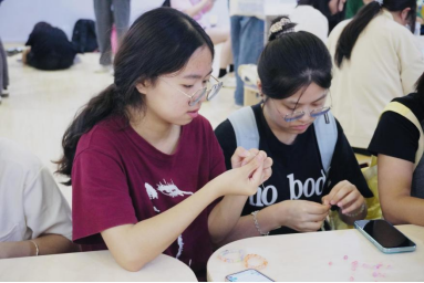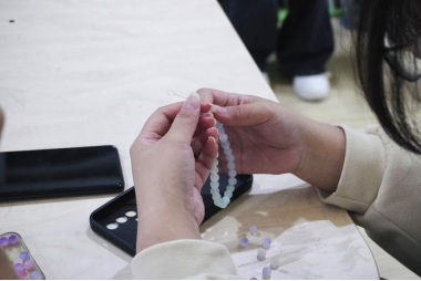 活动过程中,参加活动的同学们通过将不同颜色、形状、大小的珠子串联在一起,创造出独一无二的装饰品。串珠是一个展现创意的机会,可以帮助同学们集中注意力,暂时远离日常压力,享受一段放松的时光。