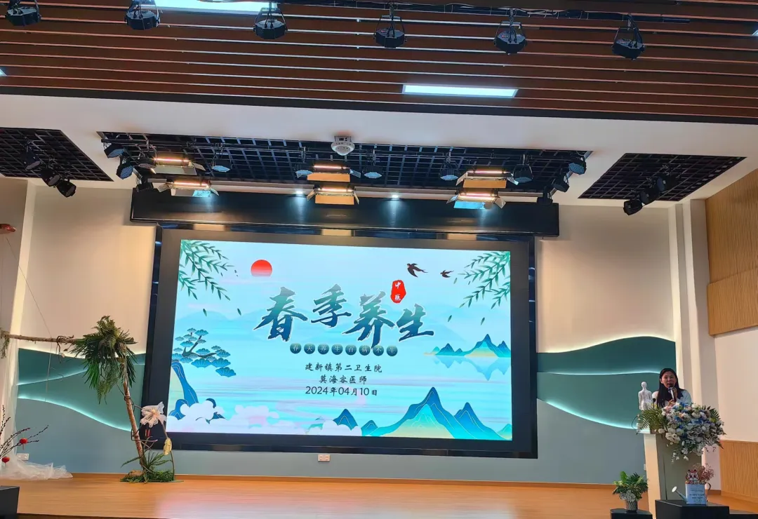 桃灼灼柳鬖鬖,春色满江南。又是一年四月天,春季锻炼正当时。4月10日下午我园有幸邀请到建新镇第二卫生院的医师们为我园教师上了一堂生动的“春季养生课”。