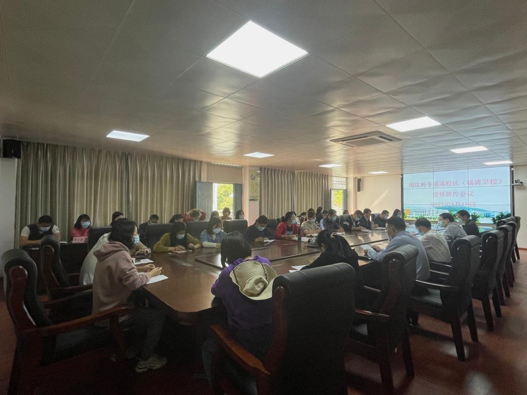 3月15日下午,闽江师专福清校区(福清卫校)在行政楼二楼召开疫情防控会议,医护学院院长刘翔炜,副院长吴国宝、吴茂龙,副书记陈锦香以及疫情防控工作领导小组全体成员参加会议。