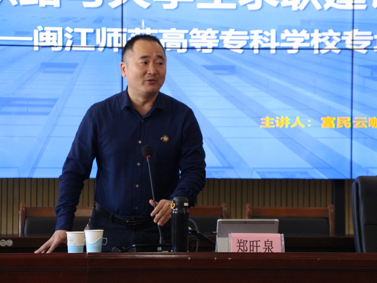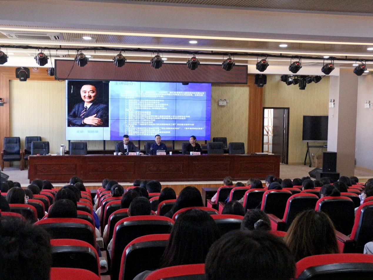 福建富民云咖信息科技有限公司党支部书记郑旺泉应邀到福清校区做了主题为“幸福是奋斗出来的——论劳动教育的重要性 ”的讲座,医护学院副书记陈锦香出席本次讲座,福清校区学生处主任陈胜、副主任孙春以及各系学生参加讲座。讲座由陈胜主任主持。
