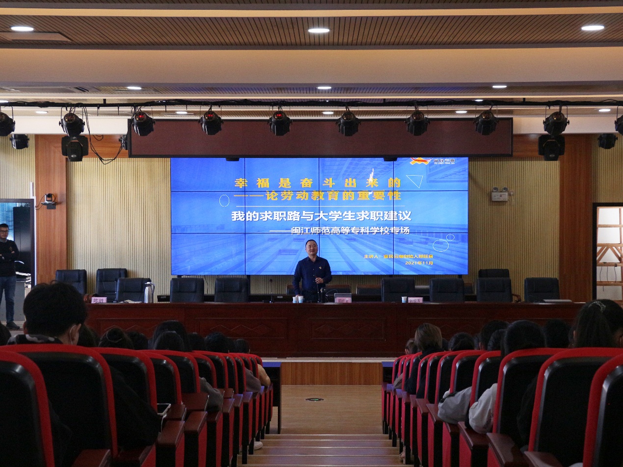 11月10日下午2点,闽江师专福清校区在信息楼四楼多功能厅开展劳动教育专题讲座。