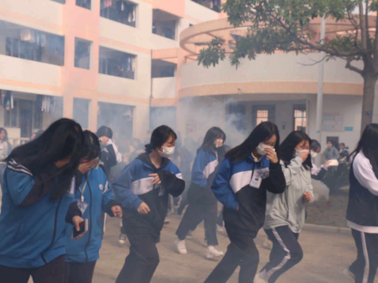 下午13点30分,随着警报声响起,消防安全疏散演练活动正式开始,各班主任以及各楼层负责人立即紧急组织、引导学生快速、有序地从宿舍各楼层向安全地带疏散。撤离过程中,同学们在老师的指引下,按照预定路线向操场疏散,整个演练过程仅用时两分二十五秒。