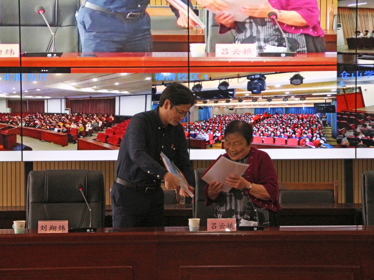 第八届全国道德模范候选人、闽江师专医护学院1948级优秀校友吕云娥应邀回母校做讲座。闽江师专医护学院院长刘翔炜、副书记陈锦香、学生处主任陈胜,各专业辅导员、班主任以及2020级和2021级学生参加本次讲座,闽江师专旗山校区、仓山校区、甘蔗校区通过远程视频连线收看讲座。讲座由刘翔炜院长主持。