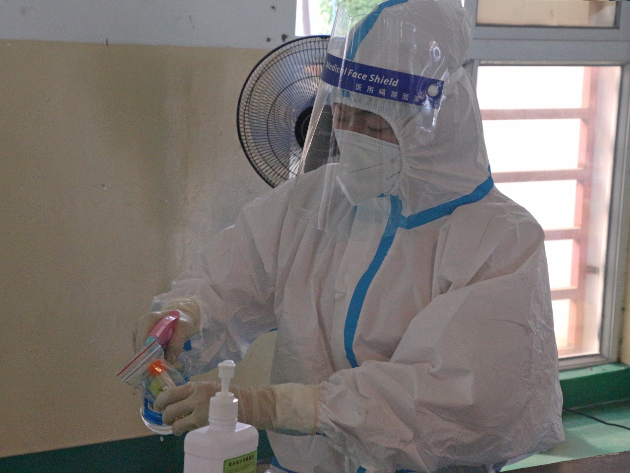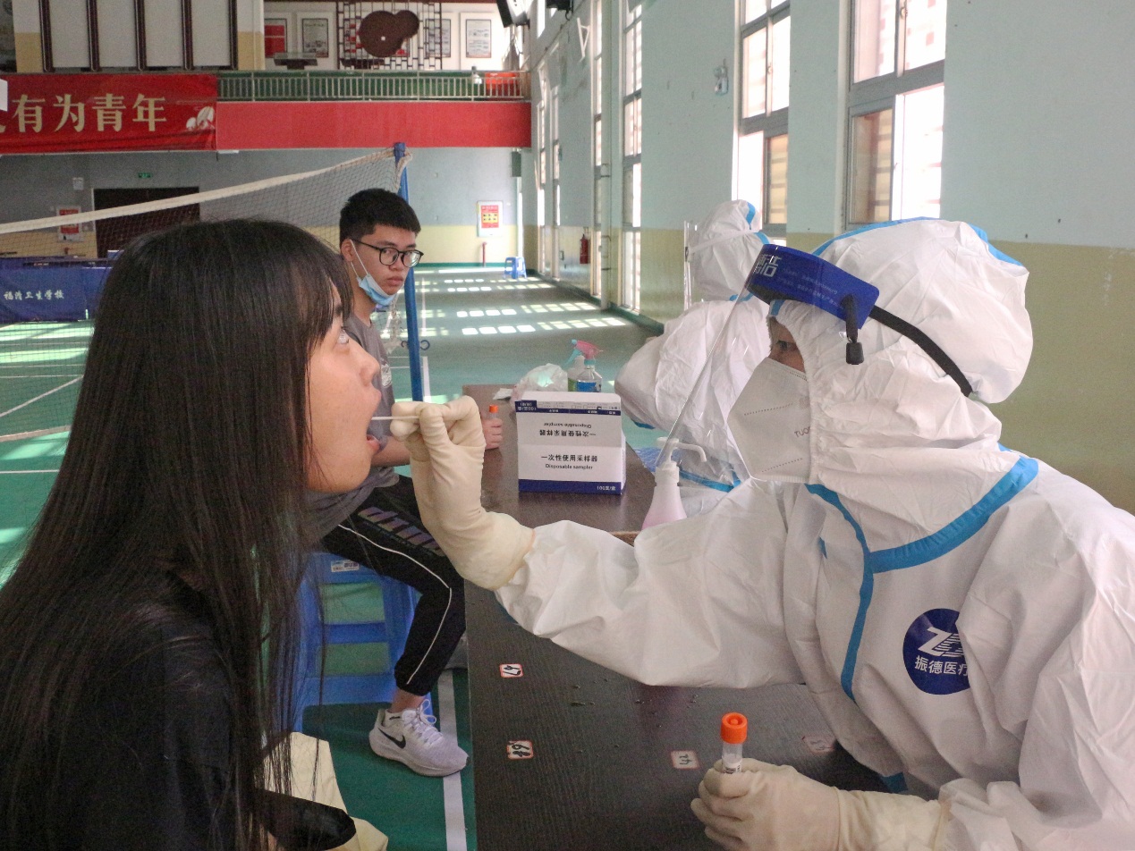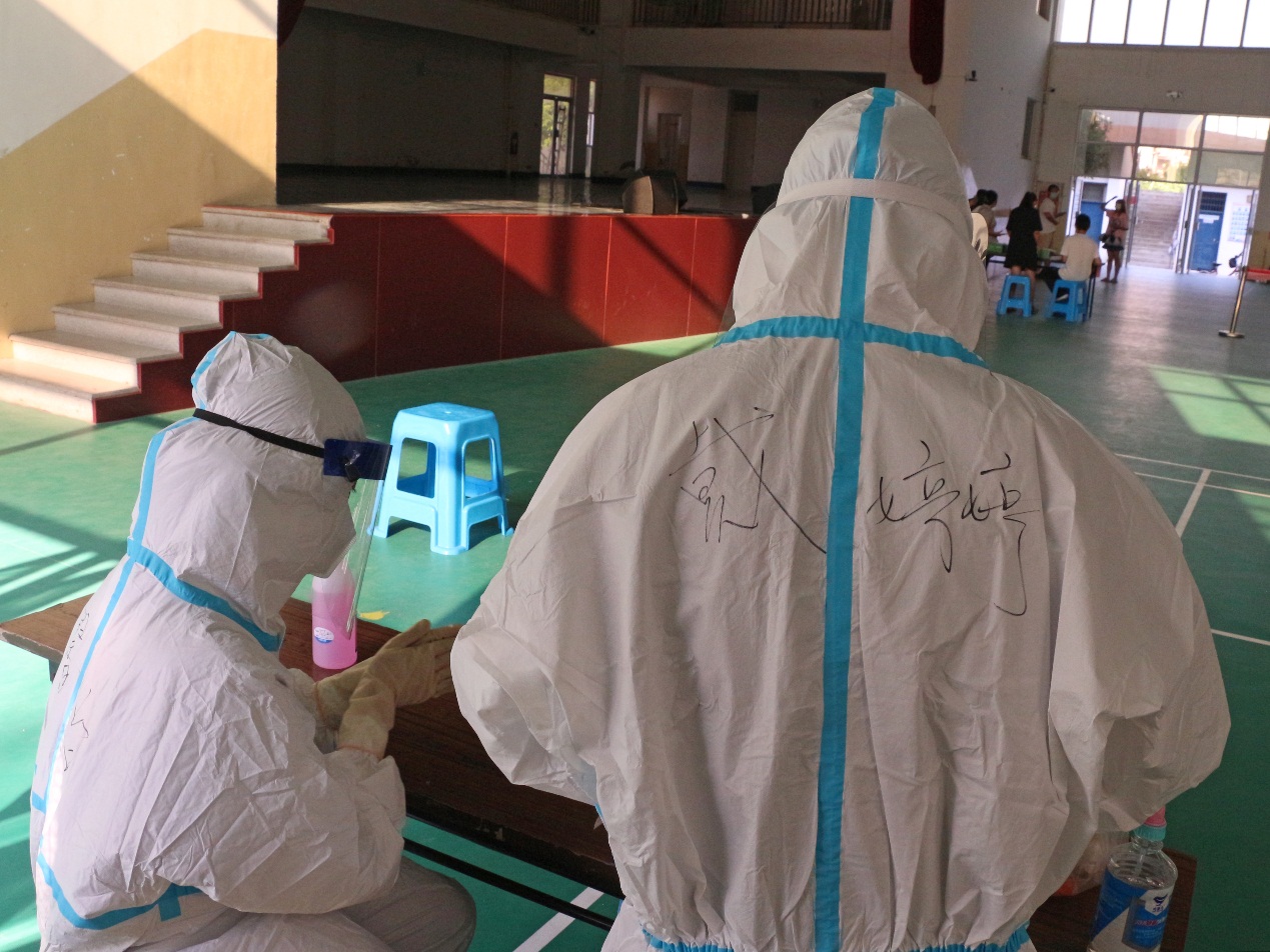 9月18日,由医护学院王振龙带队的首支核酸采样志愿队伍正式上岗,支援核酸采集工作。