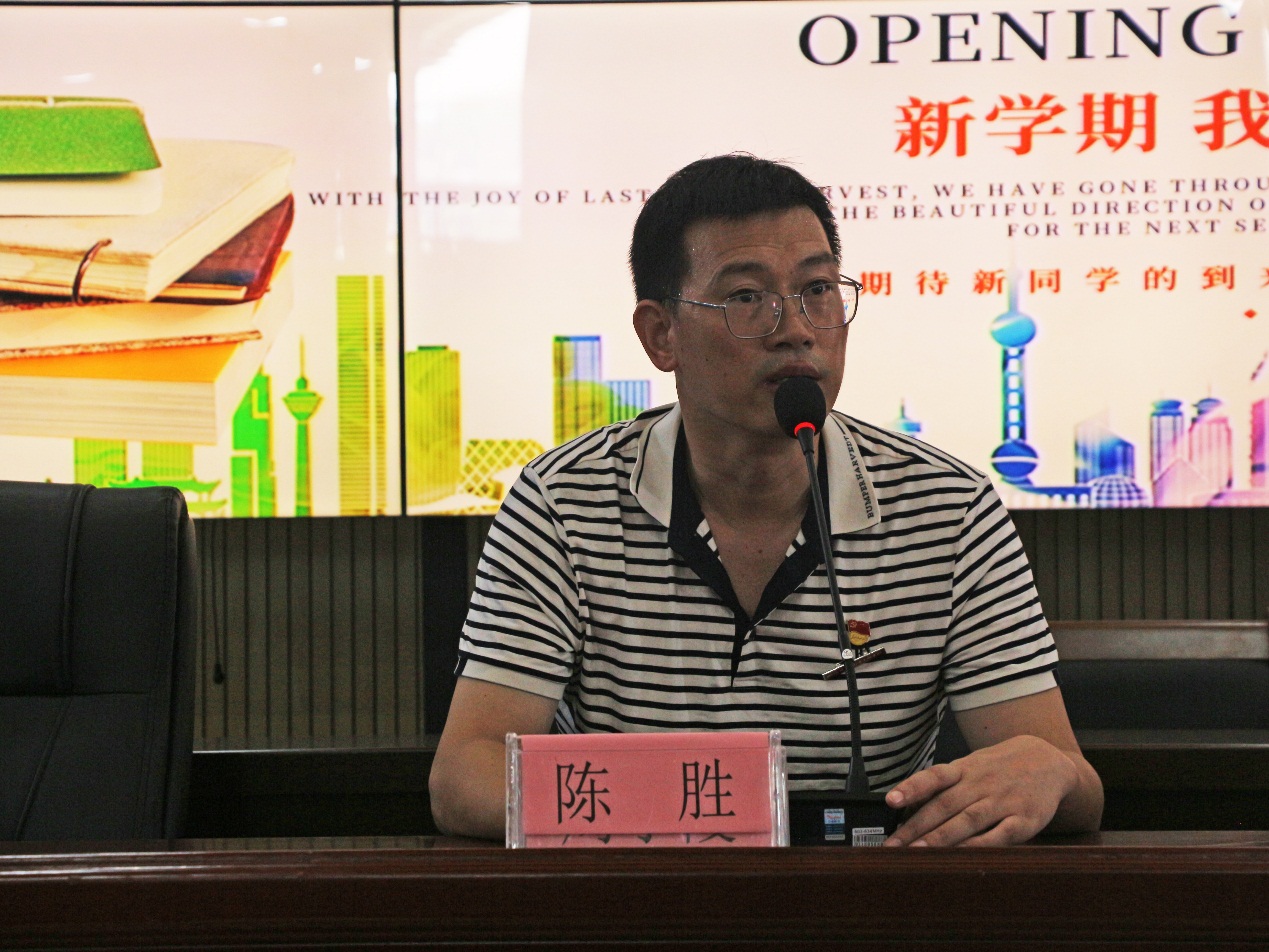 接着陈胜主任从学生管理的角度,分别就日常行为规范、学校规章制度、学习规矩、考勤、学校纪律、生活习惯、社团活动作了详细介绍。他带领新生一同学习闽江师专《学生手册》有关规定。他强调2021年是闽江师专福清校区招生的起始之年,也是2021级新生人生新篇章的关键之年,希望师生携手同行,共筑美好校园。