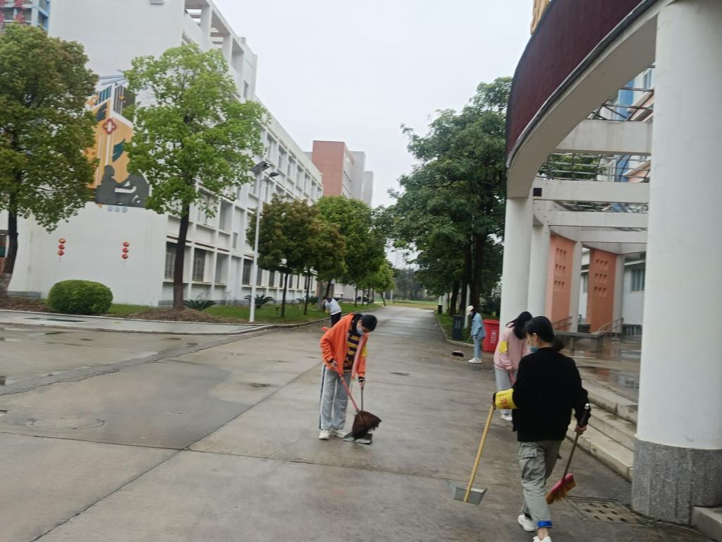 劳动周期间,21护理2班的同学们利用各种劳动工具,清理校区垃圾,教学楼、旧实训楼、新实训楼、信息楼、行政楼、百草园、体艺馆等地都有21护理2班同学们劳动的身影。