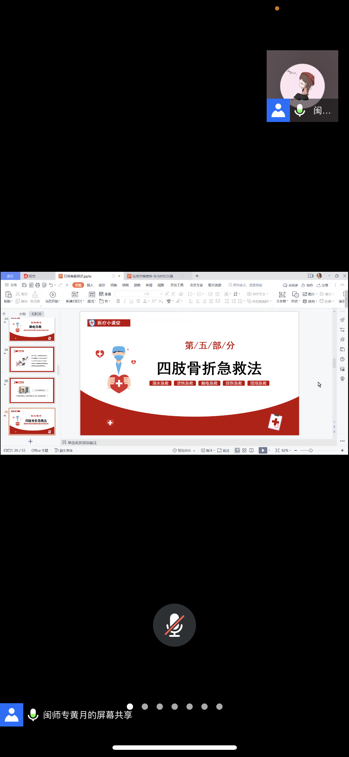 班导师黄月老师还借劳动周为契机,开展了以“弘扬劳模精神 争当时代先锋”为主题的线上班会活动。在本次教育活动中,黄月老师为同学们讲述了什么是劳模精神,什么是使命担当。还为同学们介绍了时代的劳动者、身边的劳动者。同时,黄月老师还向大家介绍了日常劳动中常用的一些急救措施,如中暑、触电、溺水、踝部扭伤等情况的急救方法。老师强调希望同学们能知晓急救相关知识,知道如何进行劳动救护。