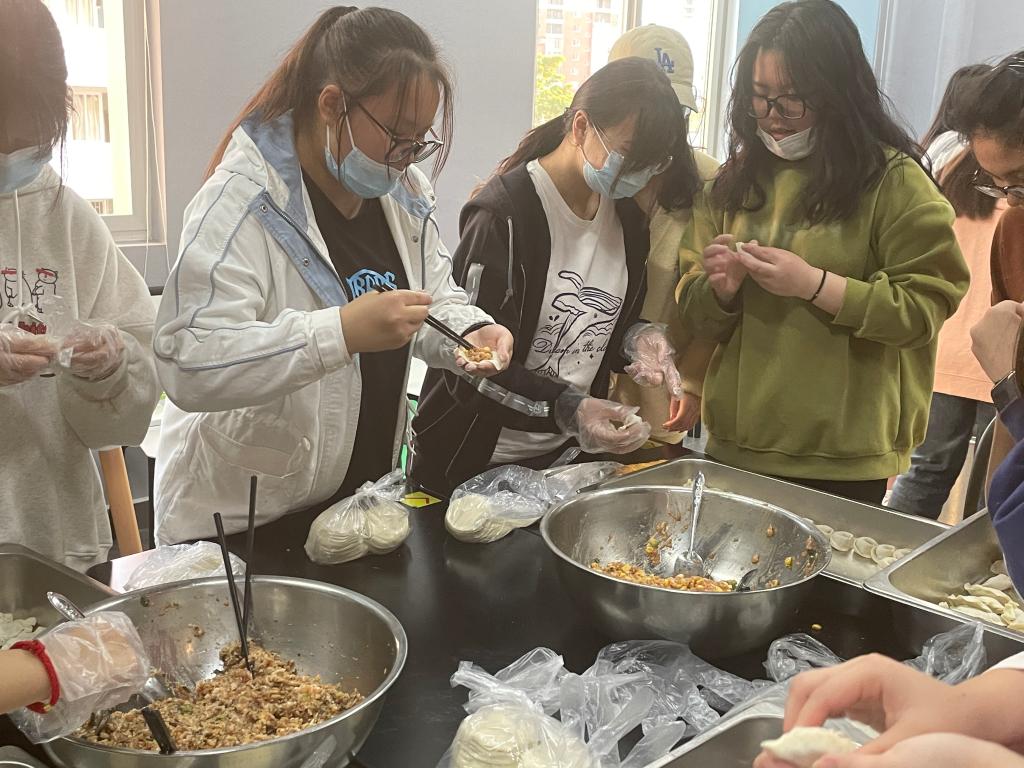 在整个过程中,同学们还一起讨论起了饺子的营养价值。同学说:“饺子馅可以包罗万象,蔬菜、肉、蛋、海鲜都可以包进去,小小的饺子,搭配合理就是一个小的膳食宝塔。”还有的同学提出可以用蔬菜汁和面可以做出又营养又好看的饺子。老师还结合营养学知识跟同学们分析每种蔬菜里的营养成分比例,针对不同人群怎样搭配更营养的食物。最后老师给大家总结了关于健康吃饺子的建议:包,自己动手;肉,适量为宜;油,点到为止;菜,留住营养;盐,尽量少放;吃,煮着最好。