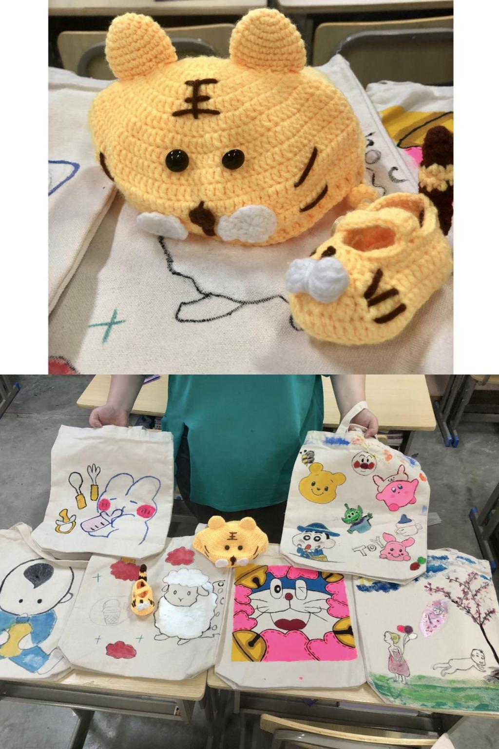 21助产2班在辅导员陈婷老师和班导师江璐两位老师带领下,利用劳动周的时间,结合助产专业特色,以婴儿的服饰为切入点,以“虎头鞋、虎头帽”为创新点,开展了“吉祥虎头帽,岁岁年年”为主题的特色劳动实践活动。