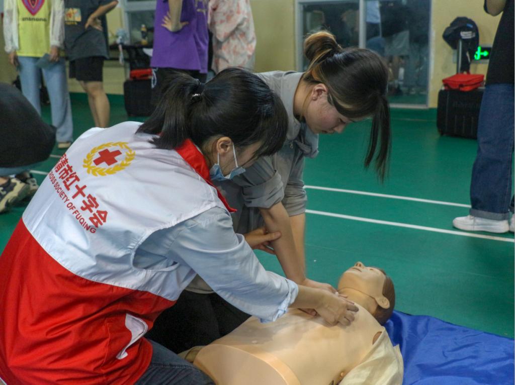此次获证培训面向福清校区非医学专业学生,学生经过16学时的公共应急救护课程学习,已基本掌握应急救护理论知识。