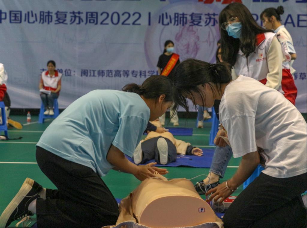 在闽江师专福清校区联合开展了心肺复苏(CPR+AED) 获证培训