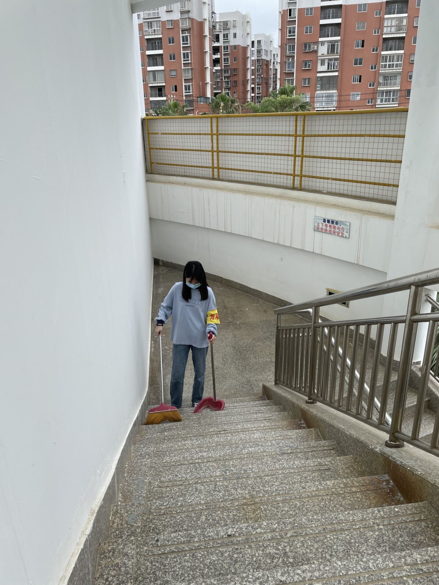 劳动周期间,21助产1班同学们活跃在福清校区的各个角落,开展校园内公共区域劳动实践,共同完成了福清校区教学楼、行政楼、实验楼等清扫任务。