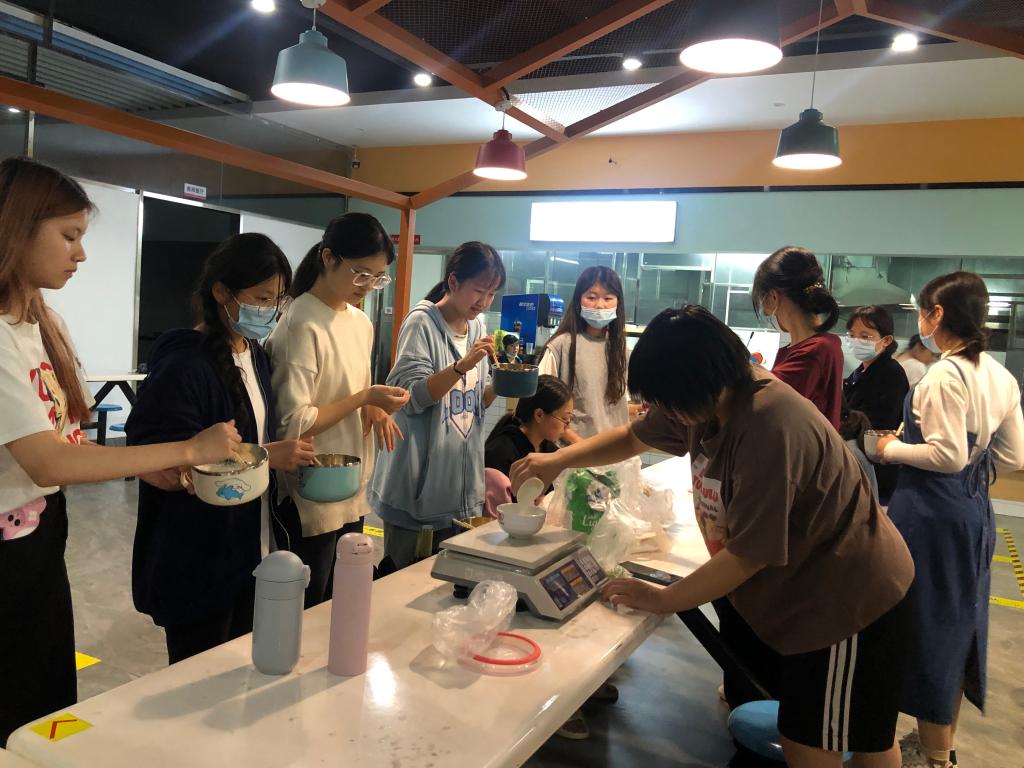 除了参与劳动实践,班导师陈美霞还带领21助产1班全体同学一起制作宝宝辅食。大家围在一起开始亲手实践,三三两两一组开始搅拌面粉,刚烤出来的小饼干各种形状,渐渐的也开始成形了。通过此次活动同学们不仅学习到小饼干里包含的营养及文化,也增进了同学之间的感情。