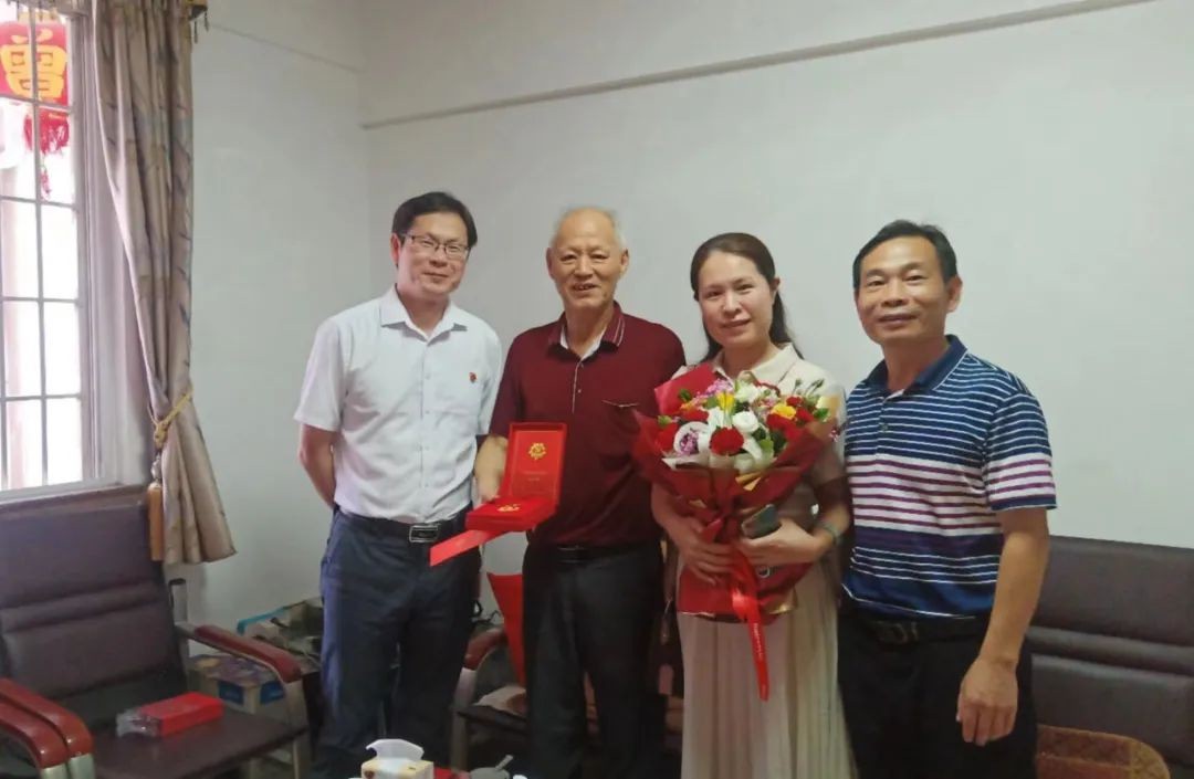 7月1日,受大赢家体育app下载党委委托,校党委委员、副校长刘翔炜带领医护学院副书记陈锦香和工会副主席韦斌走访看望党龄50年以上的老党员郑国栋,颁发“光荣在党50年”纪念章。