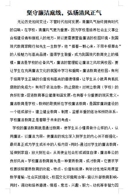 同学们积极参加,各抒己见,书写自己对廉洁文化内涵和大学生廉洁教育的理解,积极弘扬敬廉崇洁的校园新风尚。下面是各位同学的作品展示(节选片段),让我们共赏青年心中的廉洁精神。
