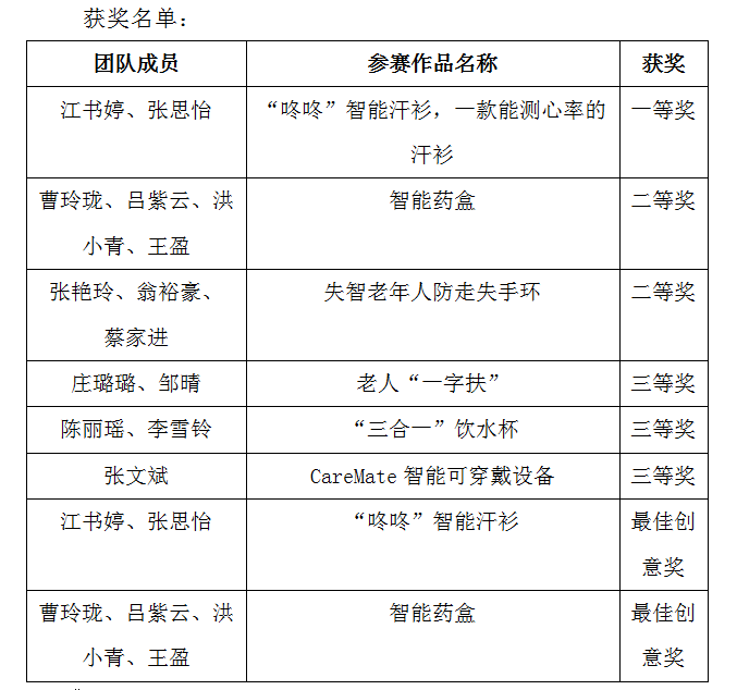 最终以“咚咚”智能汗衫为代表的六个参赛作品获奖。