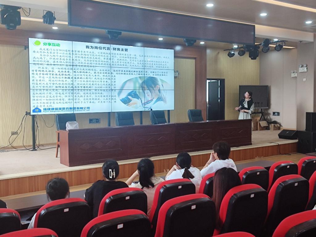 福建康佰家医药集团有限公司门店管理部罗琼芳结合自身多年的人事工作经验,通过行企前辈真实的成长案例为同学们提供了未来职业规划的思路。在互动环节,同学们踊跃发言咨询未来职场中可能遇到的问题或困难,现场气氛热烈。罗琼芳告诉同学们在夯实理论知识的同时应当抓住每一次锻炼的机会,积极参加校内外各种活动,提升自身综合素养。