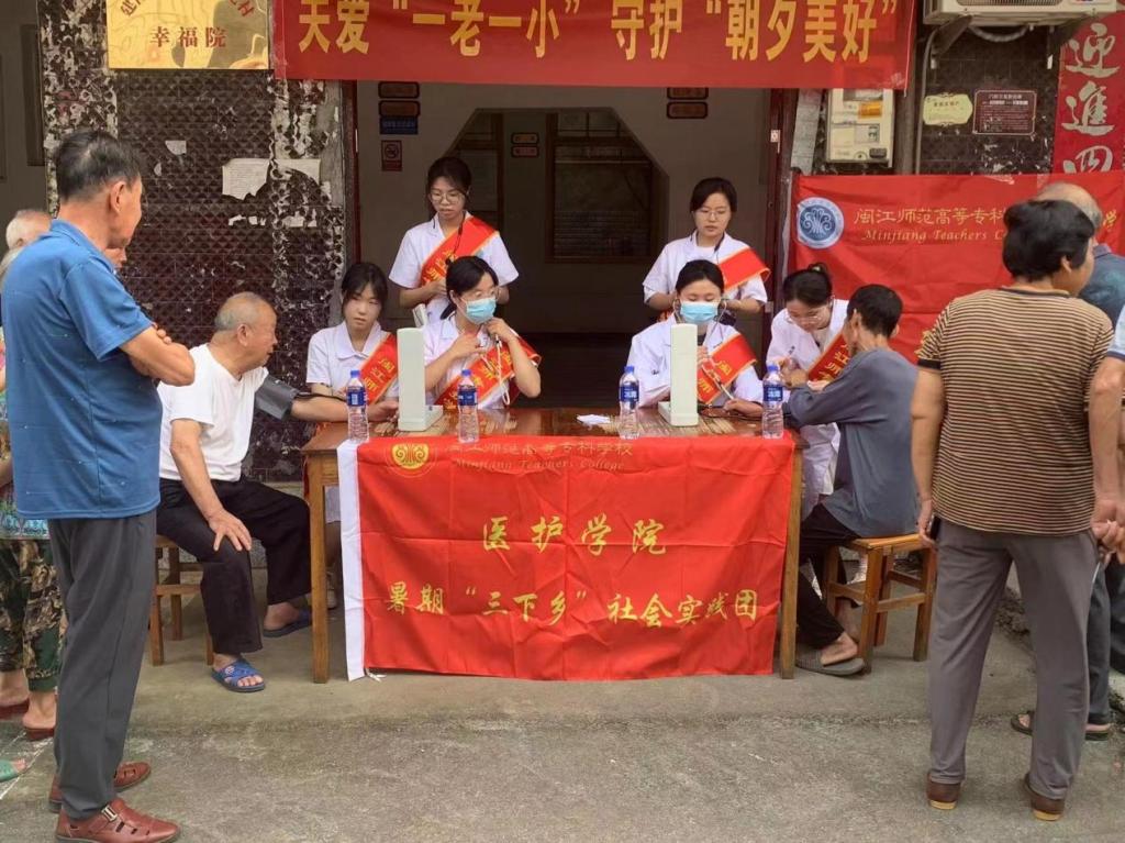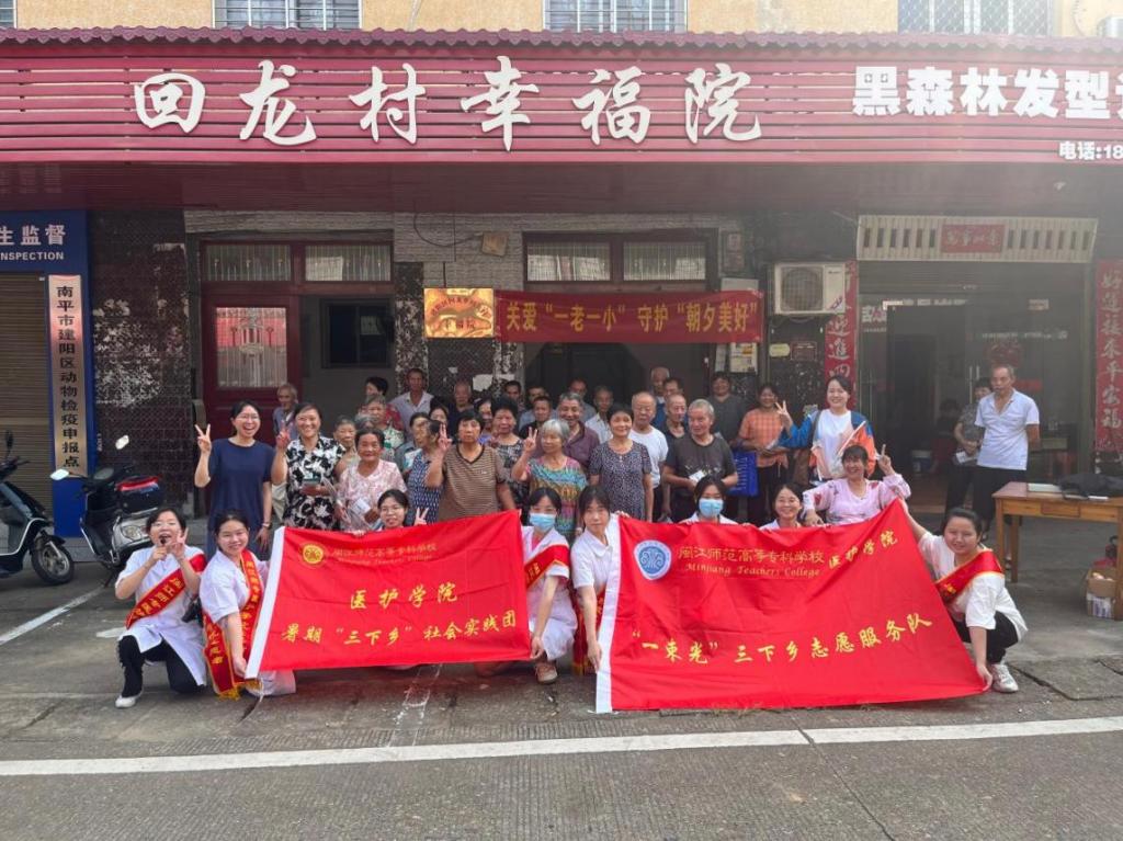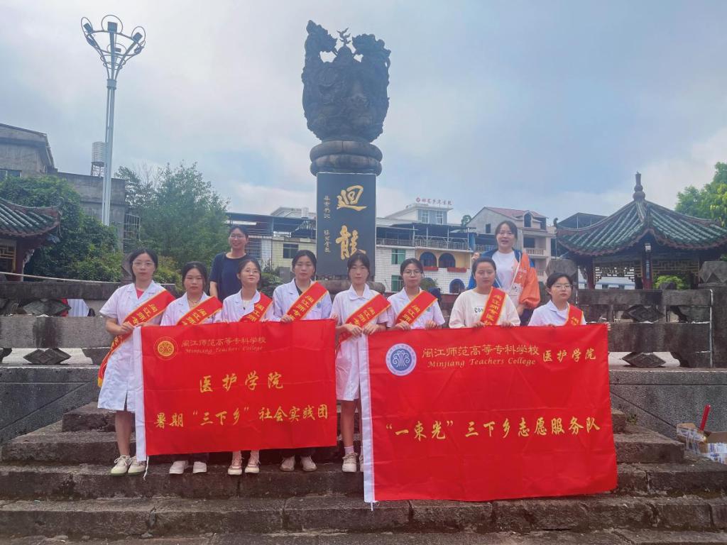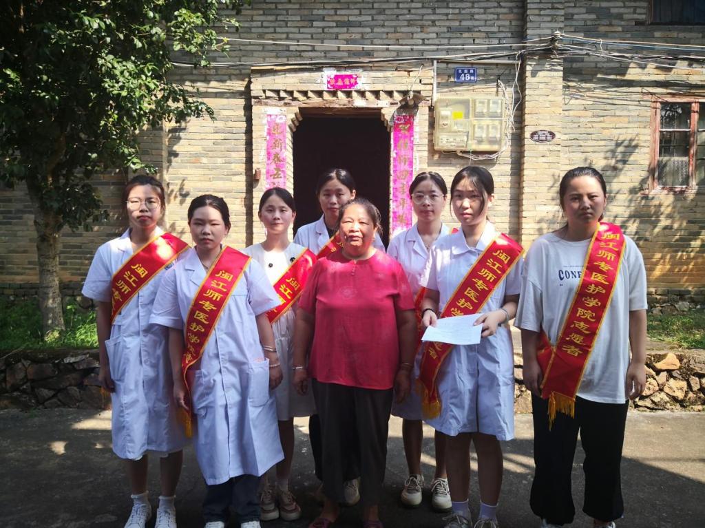 2023年8月20日,闽江师专医护学院“一束光”实践服务队8人,在叶珊、叶玉平两位老师带领下前往福建省南平市建阳区回龙村开展以关爱“一老一小”,守护“朝夕美好”为主题的暑期“三下乡”社会实践活动。