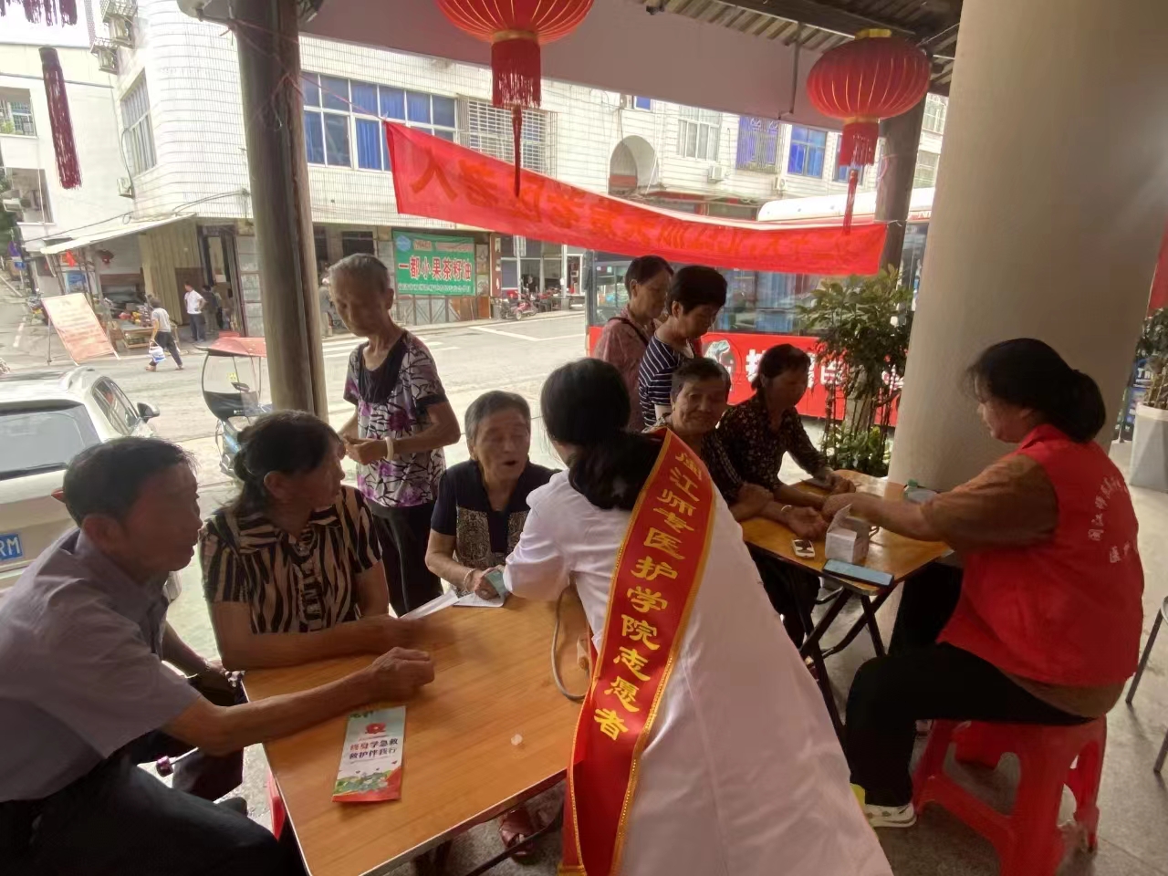 8月22日,“忆红旅,关爱老区老人”实践队在李清凤老师带领下,现场演示心肺复苏技能和海姆立克急救法,科普急救技术。同时,开展爱心义诊活动,为老区老人测量血压、血糖;宣讲老年人常见疾病预防与日常家庭护理。