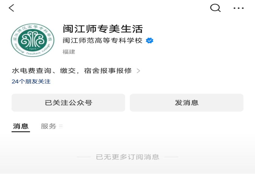 关于水电费查询缴交、宿舍保修都在“闽江师专美生活”公众号里进行操作。如若上报没有及时得到反馈,可直接去物业厅找到工作人员说明情况。