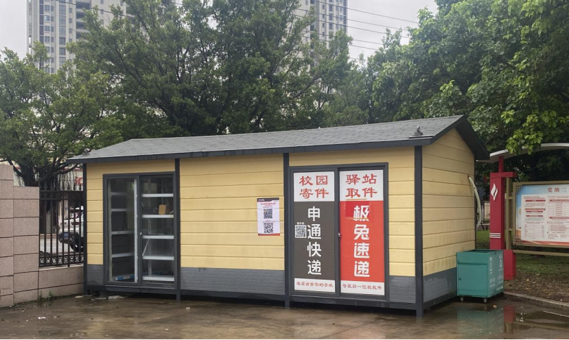 校门口保安室对面设有驿站,申通、极兔快递可以进入校园驿站,京东、顺丰、邮政每天中午和傍晚会送到校门口,其余快递可选择到镇上自取或寻找代拿。