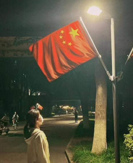 在中华人民共和国诞生74周年的伟大日子,医护学院学子与国旗同框
