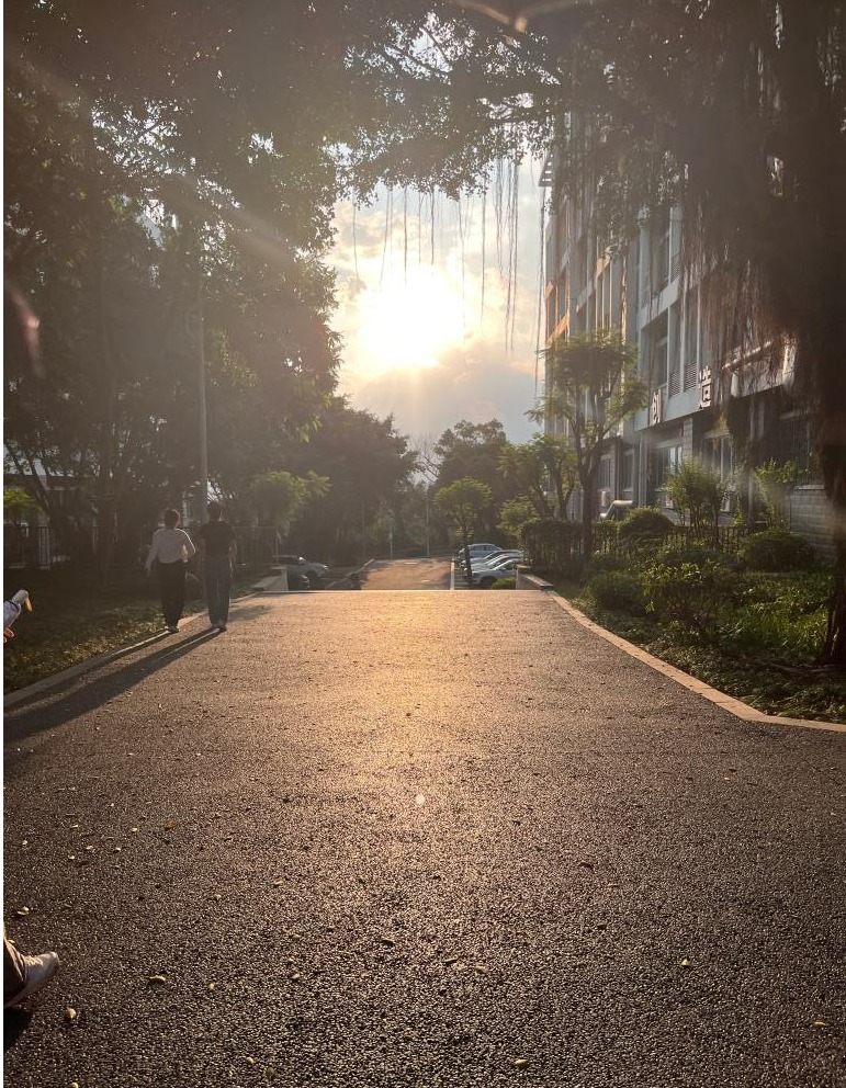 照片描述:拍下这张照片的时候才刚刚开学不久,傍晚下课吃完饭回到宿舍,抬头忽然看到这一幕心情超好,学校平时的夕阳也很美,但这片光影一下子就吸引到我了。在学校百廿之际,将这张照片分享给大家,希望大家天天开心。