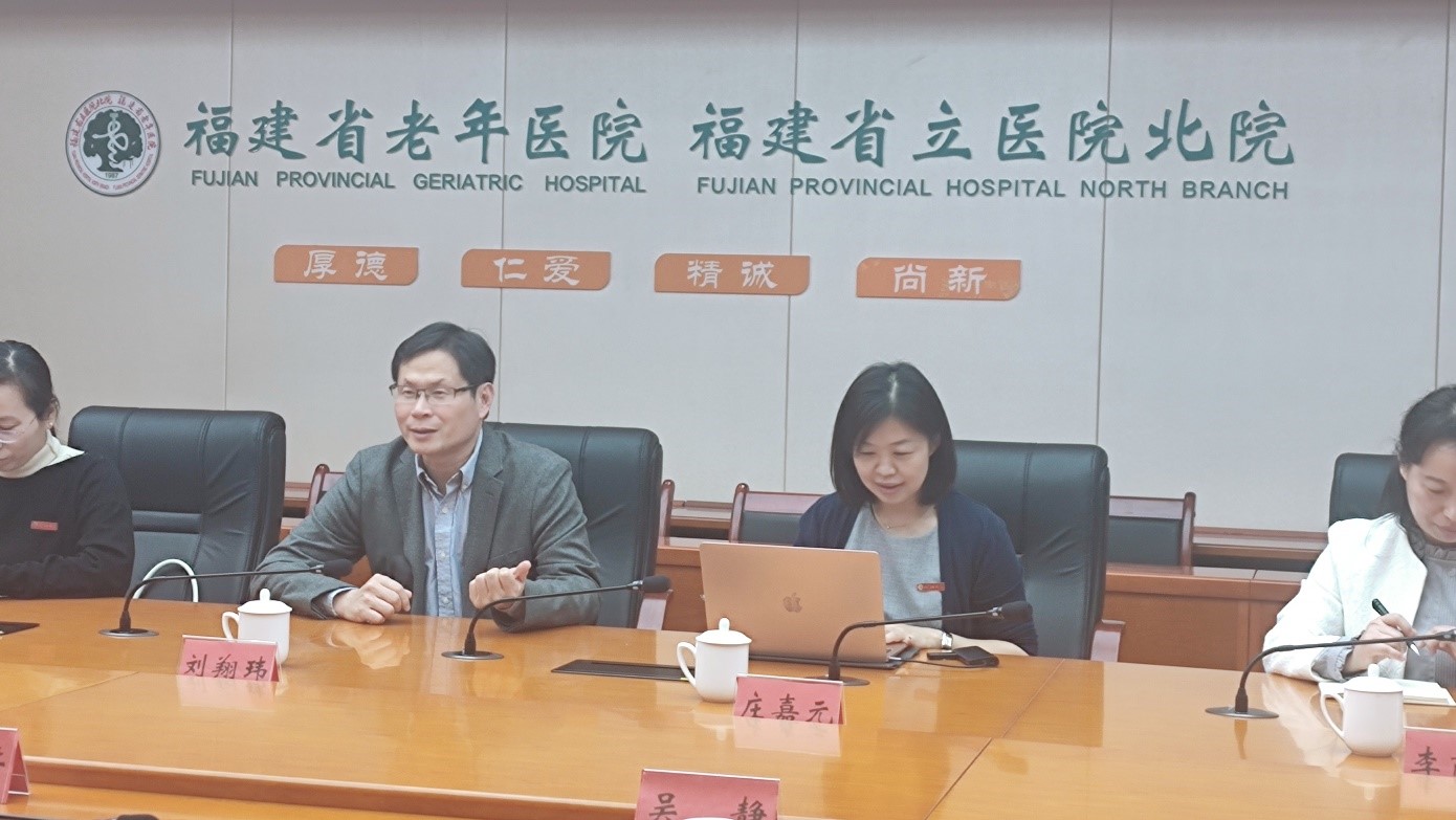 福建省老年医院党委书记张峻芳介绍了省老年医院的发展特色并对大赢家体育app下载医药卫生人才培养方向与社会的高度适用性表示肯定与赞赏。副院长曾庆新围绕医院的老年医学特色展开讨论。科教科负责人吴静围绕福建省老年医院基本情况、临床教学实施及相关科研教学工作等方面进行汇报。