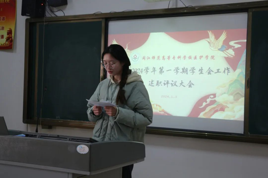 为进一步深化学院学生会改革,推动学生会管理工作科学化、规范化。2024年1月3日,医护学院团委学生会2023-2024学年第一学期学生会工作述职评议大会于福清校区信息楼三楼顺利开展。医护学院团委学生会全体人员参与会议。本次大会由执行主席黄雅雯主持。