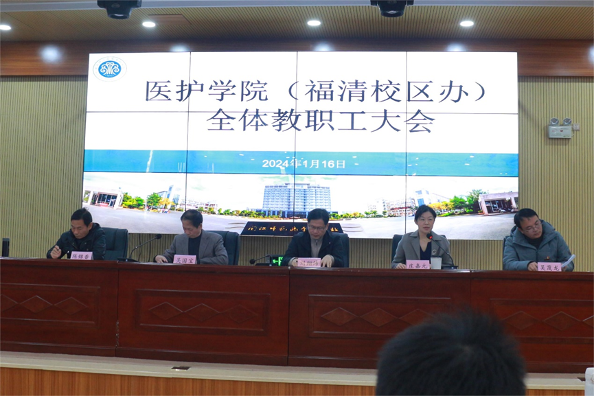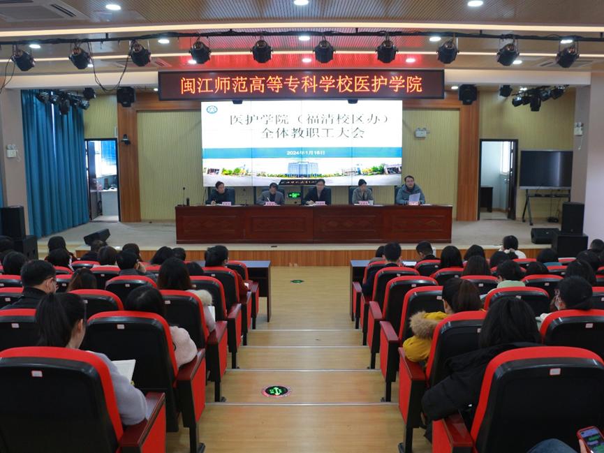 2024年1月16日上午,我院在信息楼4层会议室召开全体教职工大会,闽江师专刘翔炜副校长、医护学院庄嘉元院长、吴国宝副院长、吴茂龙副院长、陈锦香副书记出席会议,全体教职工参会。会议由吴茂龙副院长主持。