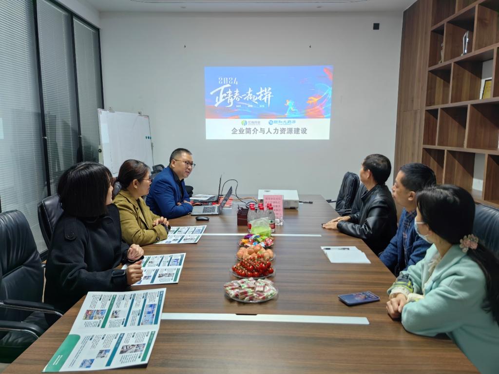 企业总经理张勇铃、质量负责人吴丽花及行政部、门店管理部、质管部等部门主管对吴国宝副院长一行的到来表示热烈欢迎,并就企业概况、发展、用人需求情况进行了介绍。
