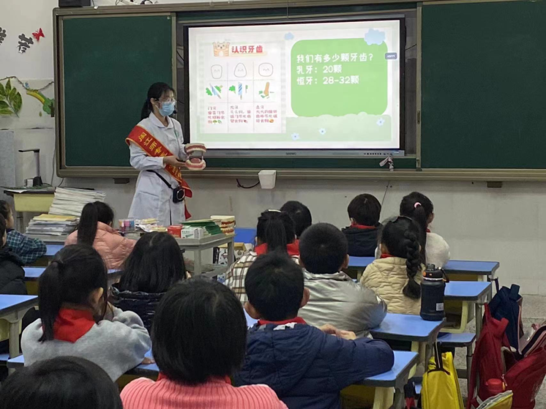 3月15日上午,班导师李小婷老师组织带领全班同学前往福清市海口中心小学开展口腔健康知识宣讲活动,活动面向二年级全年段,分5组进行。护理专业(口腔方向)学生各组通过生动有趣的课件、现场示范、抢答等环节,为小学生们科普牙体结构、龋齿概念、如何正确刷牙以及健康的饮食习惯等,引导小学生们养成早晚刷牙、饭后漱口的好习惯。