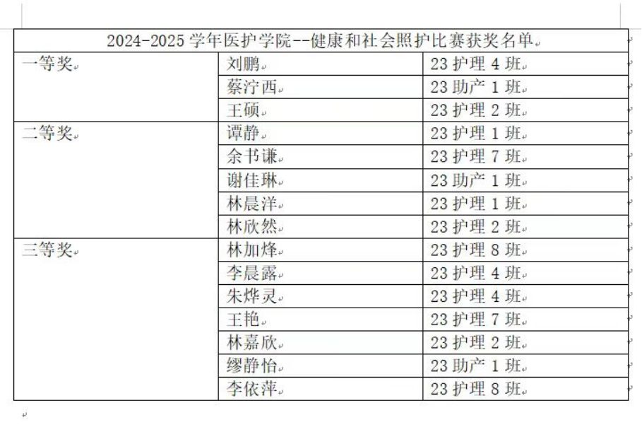 此次大赛不仅锻炼了学生的专业技能,还提高了他们的实践能力和创新思维。同时,大赛也为学生们提供了一个展示自我、交流学习的平台,有助于推动健康与社会照护领域的发展。闽江师专医护学院表示,往后将继续举办类似活动,为学生提供更多实践机会,全面提升学生的职业素养和综合能力,为培养高素质的健康与社会照护人才贡献力量!