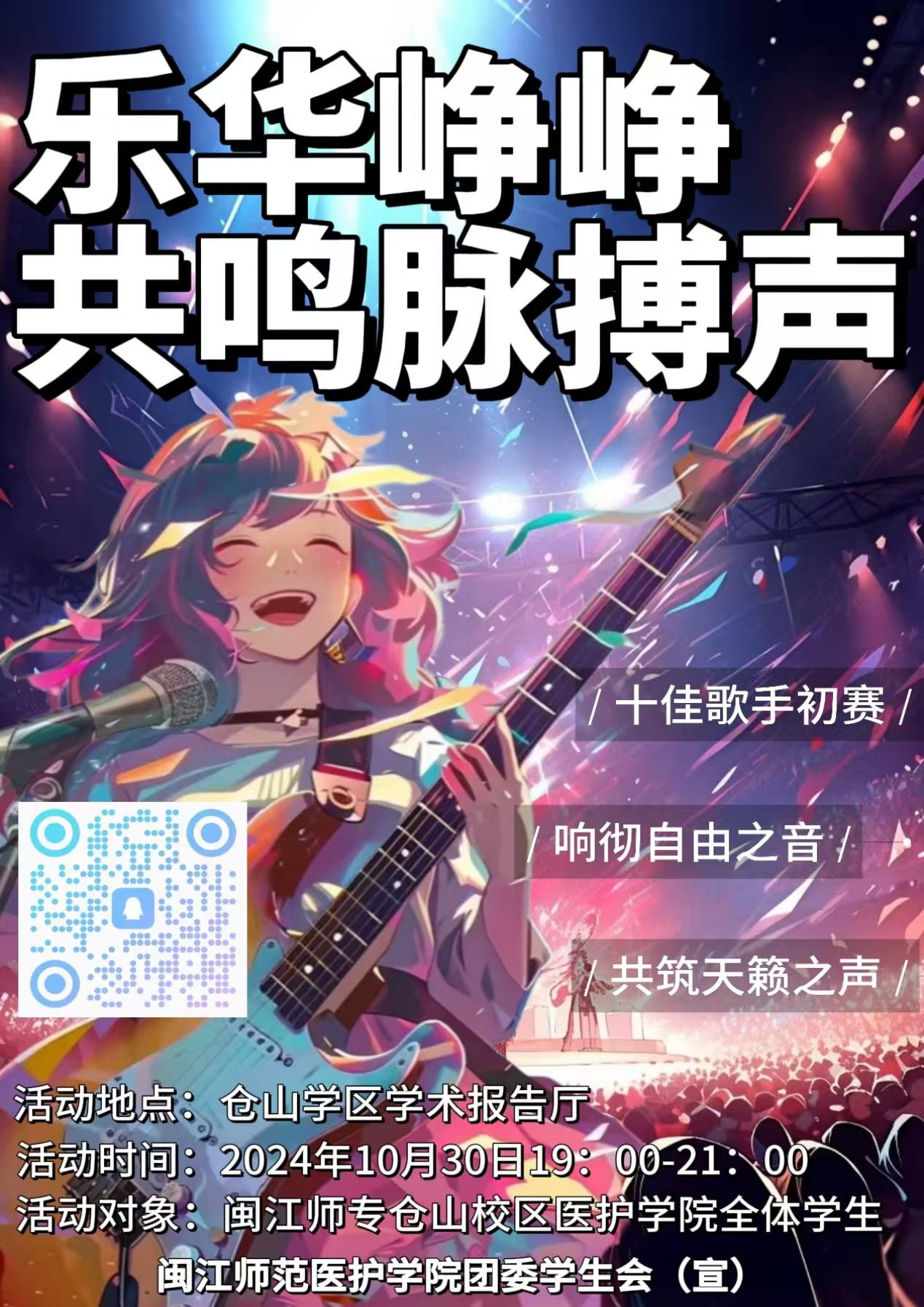 丰富大学生的课余生活,提高学生的艺术修养,展示学生的音乐才华,营造积极向上、健康文明的校园文化氛围。2024年10月30日,医护学院团委学生会在仓山校区学术报告厅面向全体同学组织开展了“响彻自由之音,共筑天籁之音”十佳歌手比赛活动。