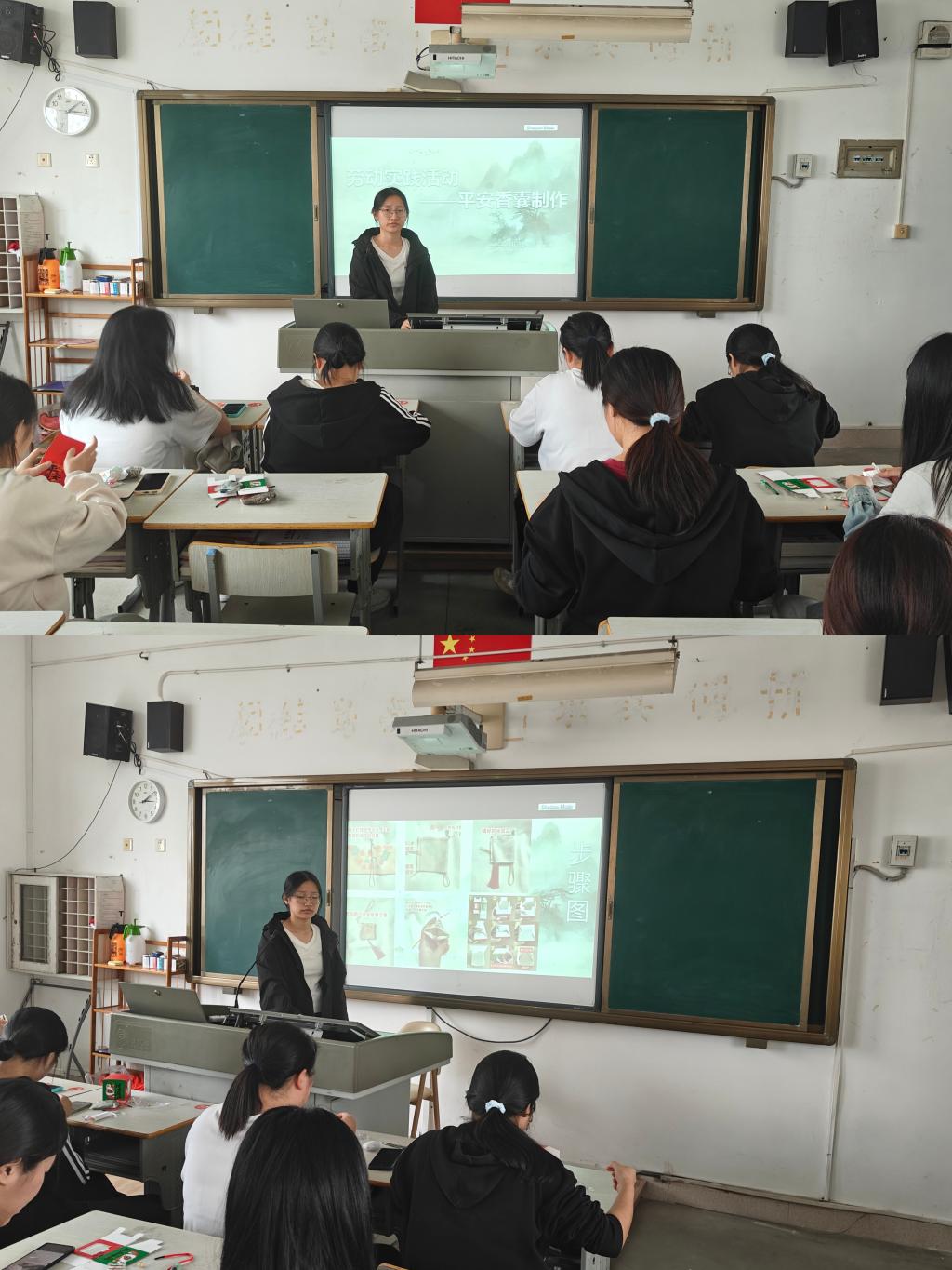 经过一番努力,一个个独具匠心的香囊终于在同学们手中诞生了。团支书上台总结,展示同学们的优秀作品。在团支书带领下,同学们积极分享制作过程中的趣事和心得。每一个香囊都承载着她们的心血和创意,也见证了她们在劳动实践中的成长和收获。