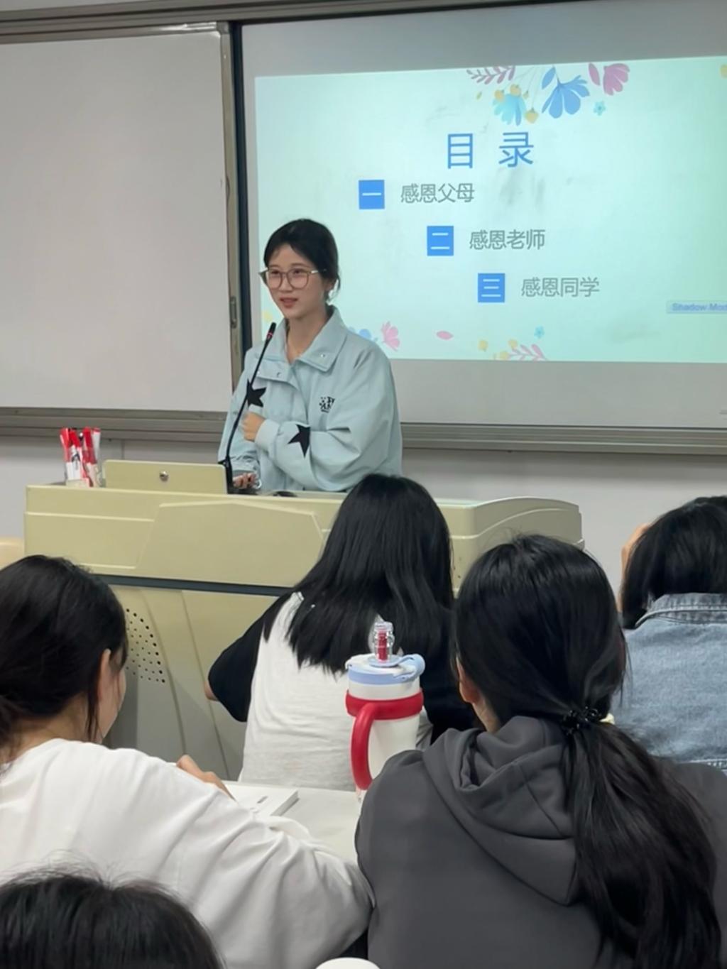 感恩是一种生活态度,是一种品德,如果人与人之间缺乏感恩之心,必然会导致人际关系的冷淡和生活中的不如意。所以,学会感恩对于现在的同学们来说尤其重要。本次“心存感恩,励志奋进”主题班会于2024年11月11日,在教学楼308教室举行。