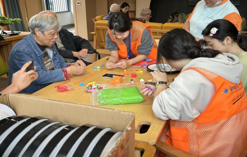 活动当天,志愿者们与老人们围坐在一起,桌上摆满了五颜六色的橡皮泥。志愿者们首先展示了一些简单而富有创意的橡皮泥作品,瞬间吸引了老人们的目光,激发了他们的兴趣与好奇心。在志愿者们的耐心指导下,老人们纷纷动手尝试。一双双饱经岁月沧桑的手,在志愿者的陪伴下,逐渐将一块块橡皮泥捏成了各种可爱的形状。
