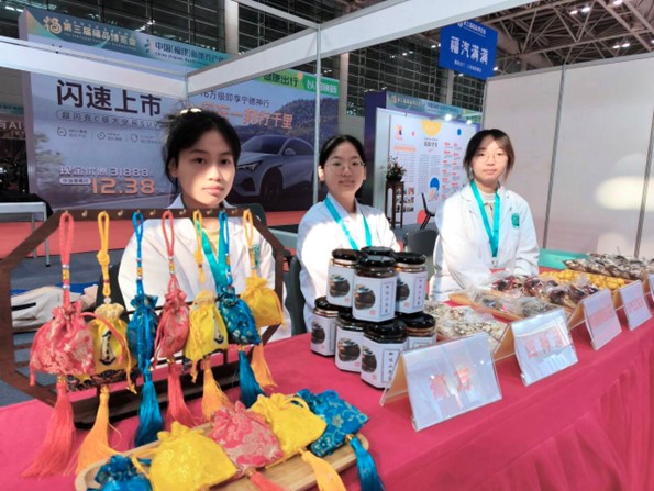 中药学专业师生在展示区现场化身中医药文化的传播使者,深入浅出地为观众讲解中药康养的历史渊源、理论基础以及各类中药康养产品的配方组成、制作工艺和适用范围,激发了大家对中药康养的兴趣和热爱之情。