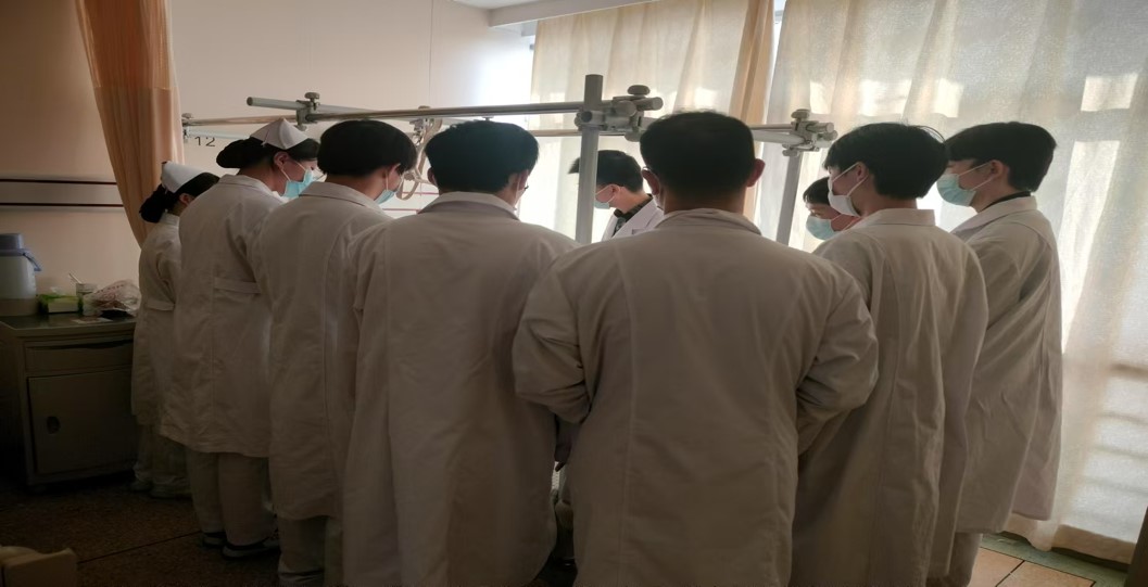 同学们身着整洁的护士服,满怀期待地跟随带教老师走进了骨科病房,开始了他们期待已久的查房过程。带教老师一边介绍病房环境,一边带领同学们逐一查看患者的情况。查房过程中同学们跟着带教老师仔细观察着患者的伤口恢复情况,听着带教老师详细讲解手术过程、术后护理及康复要点。