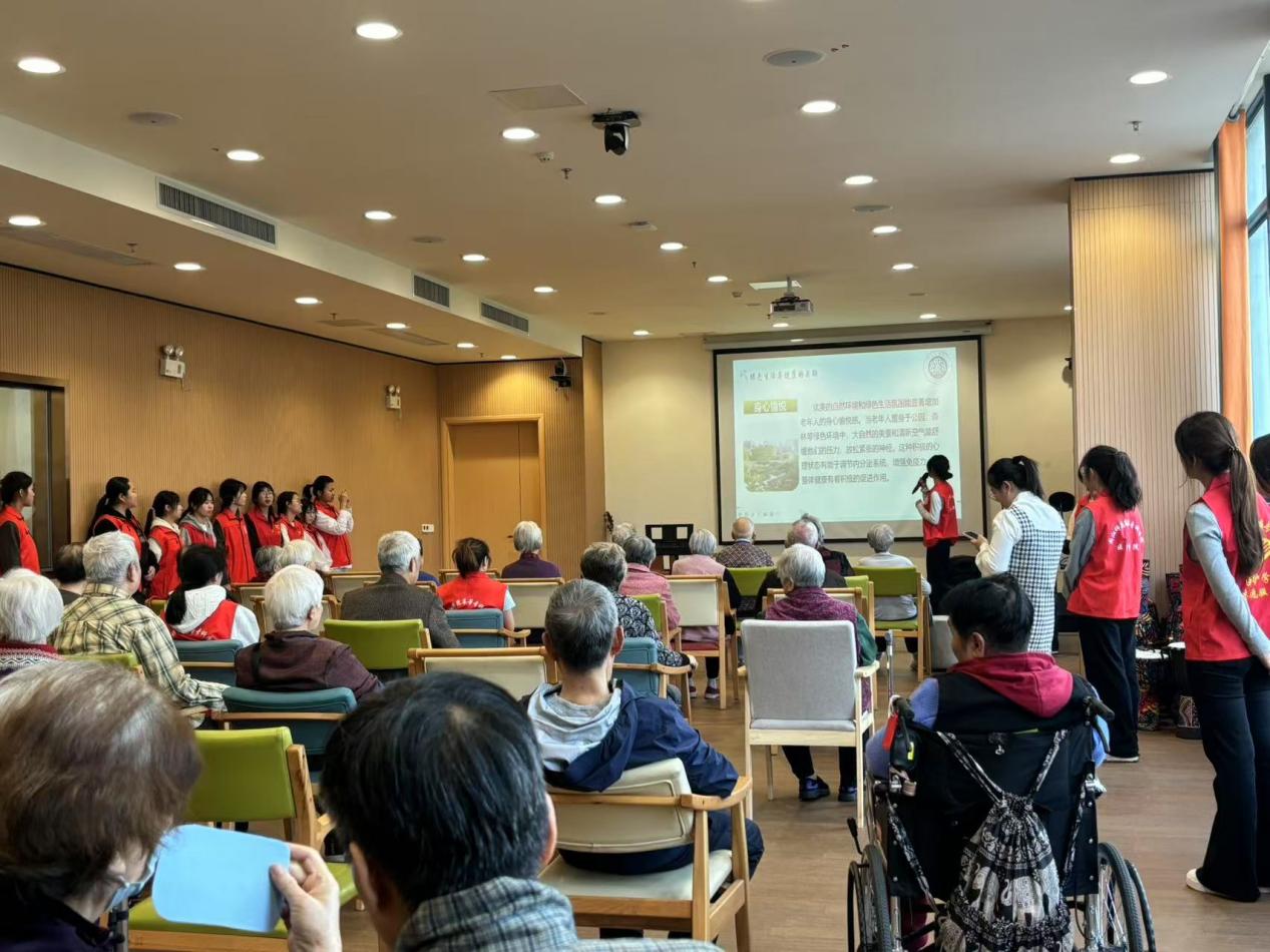 阳春三月,草长莺飞,为迎接植树节,近日,医护学院支部党员和23护理4班学生组成的志愿队一起走进养老院,开展了一场主题为“银龄守护行动,绿色健康同行”的暖心志愿服务活动,为平日宁静的养老院增添了盎然生机与活力。此次活动不仅为老人们带来了健康知识和欢乐,还通过互动环节传递了环保理念,赢得了老人们的热烈欢迎和高度赞扬。