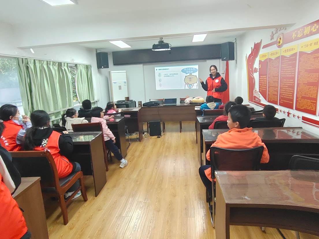 活动以趣味急救动画开场,志愿者巧妙结合剧情设置"危险信号连连看"互动,自然引出异物卡喉的紧急场景。面对孩子们困惑的眼神,志愿者将海姆立克法化作"剪刀石头布"口诀:"一找肚脐上,二握拳头放,三抱用力冲,异物跑光光!",配合模拟马甲演示,让专业急救变得生动有趣。