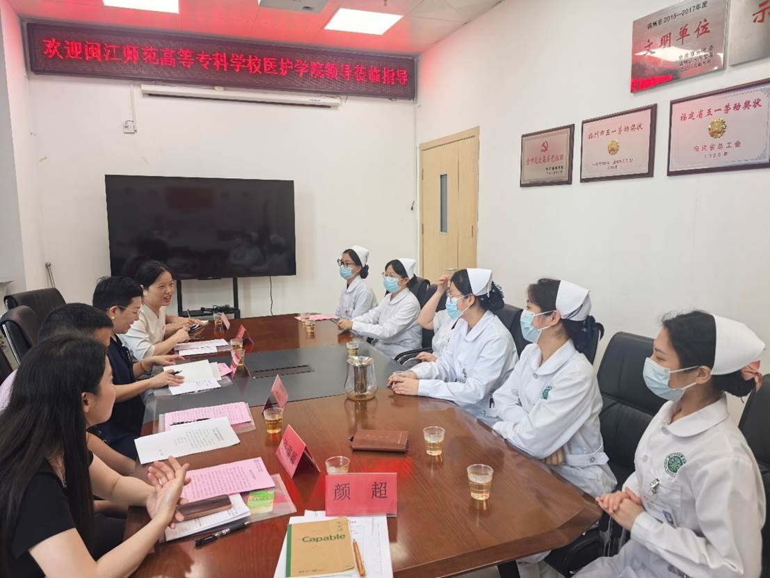 在医院副院长林民忠、护理部主任黄淑君等领导的热情陪同下,张瑛一行对医院的建院历史、医疗设施、学生实习环境等进行了实地了解。在校院座谈会上,张瑛详细介绍了学院的发展历史、专业建设情况等。双方通过坦诚交流,增进了彼此了解,为后续深度合作注入信任基石。医院护理部副主任陈妹金对我院实习生扎实的专业素养、积极的学习态度和出色的实践能力给予积极评价。