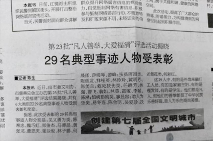 喜报|医护学院学子翁如同学在福清市“凡人善举 大爱福清”评选中荣获“慈善热心人士”荣誉称号