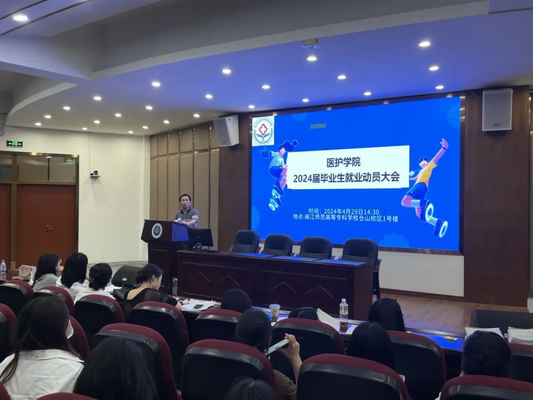 为教育引导广大毕业生认清当前就业形势,降低就业预期,医护学院于4月29日在仓山校区学术报告厅隆重召开2024届毕业生就业动员大会。2024届毕业班辅导员及毕业生参与了此次动员大会。