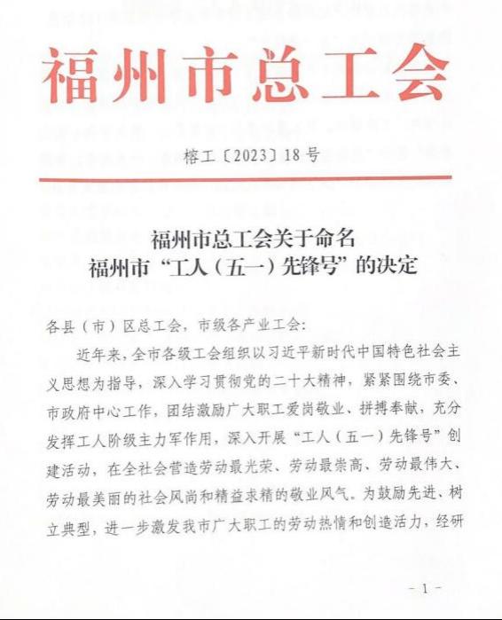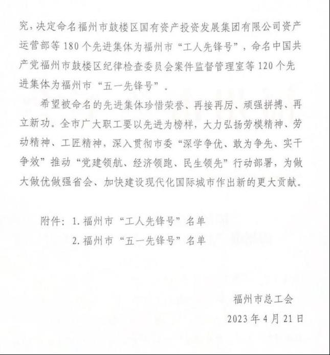 近日,福州市总工会公布了2023年“工人(五一)先锋号”表彰结果,大赢家体育app下载医护学院附属综合门诊部光荣上榜,荣获2023年福州市“五一先锋号”荣誉称号。