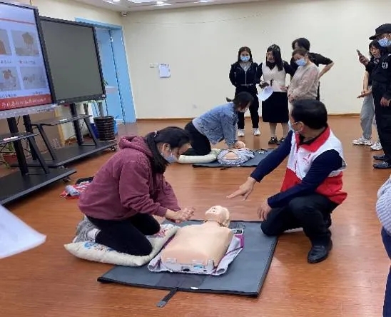 培训现场,陈锦香副书记细心指导每一位学员心肺复苏操作步骤,及时指出不规范的地方并要求重新操作,帮助学员们更好的掌握应急救护技能。通过现场模拟,向学员们演示骨折、烫伤等意外伤害发生后的正确包扎和固定方法,并与学员们积极互动,用讲练结合的方式充分调动了学员们的学习积极性,使学员们扎扎实实地学会了较实用的急救方法。最后参加此次培训的学员们均通过急救知识和技能考核,取得“红十字救护员”证。
