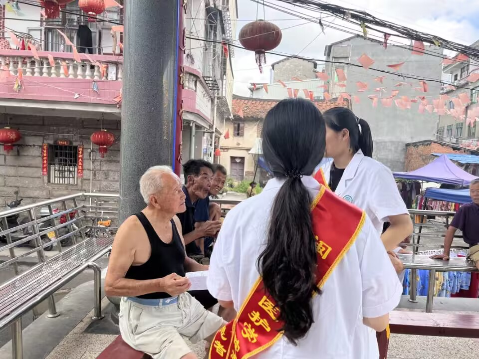 同时,实践队员们以上街走访填问卷的形式,深入调研各村村民对于养生保健及慢病的了解情况,向村民宣传慢病管理、中医夏季养生知识等。